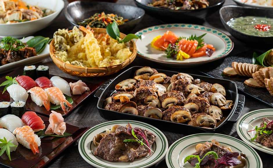 レストラン「碧 423」では、秋田の名物料理や地元食材を活かした和洋中約60種類のメニューが並ぶ、充実の夕食ビュッフェをご提供。牛ステーキや握り寿司に加え、地酒やクラフトビールも豊富に取り揃え、秋田の魅力を味わい尽くせる内容となっています。朝食では、きりたんぽ鍋や稲庭うどんなどの郷土料理に加え、洋食メニューも充実。雄大な秋田駒ヶ岳を望む開放的な空間で、爽やかな朝のひとときをお楽しみいただけます。