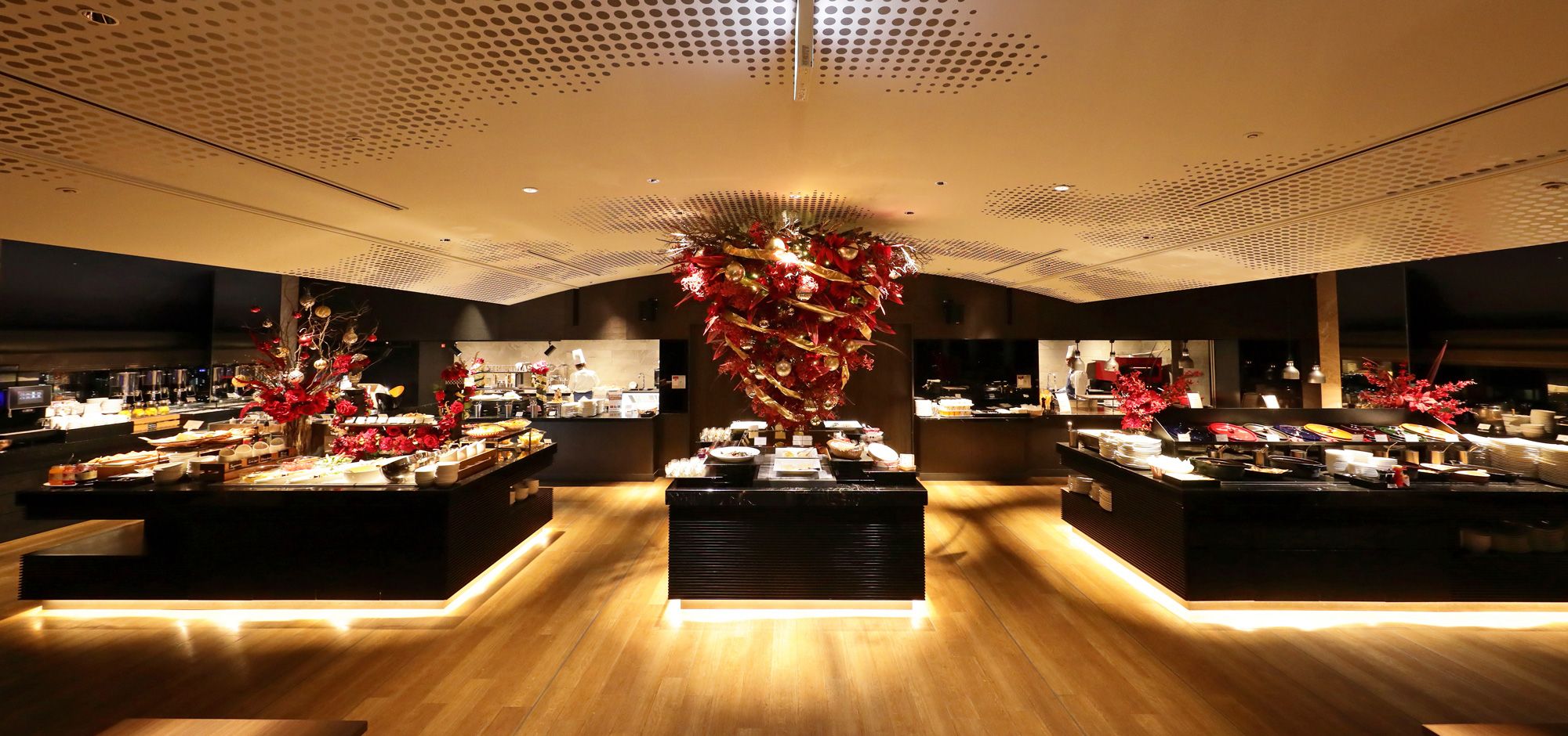 和洋約80品の豊富なメニューとライブキッチンでシェフが目の前で作り上げる極上のお料理を心ゆくまでご堪能ください。